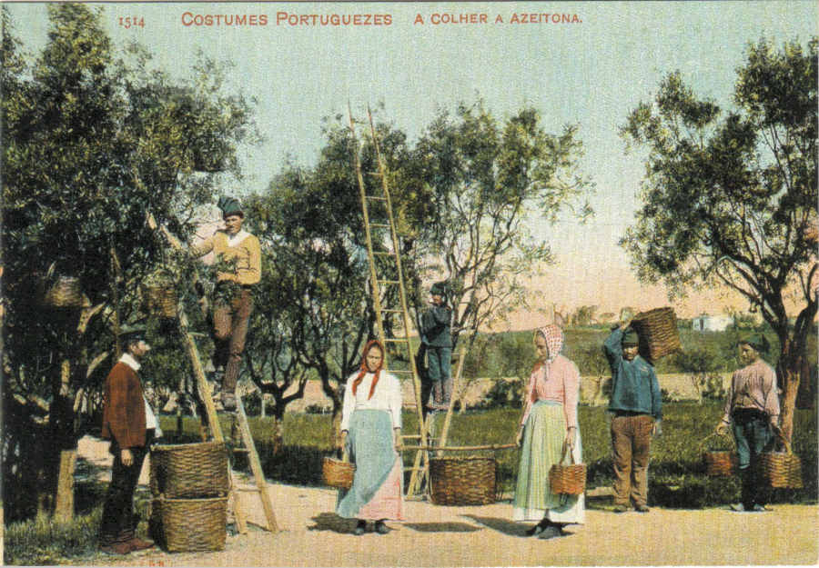 21 - Costumes portugueses. Apanha da azeitona em 1906.