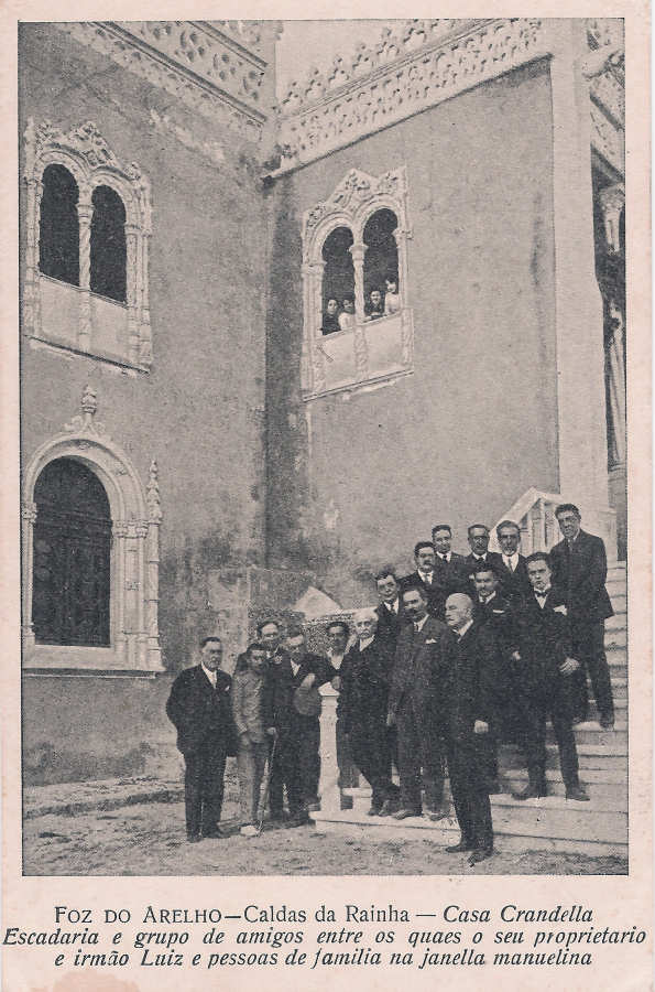 SN - Portugal. Caldas da Rainha. Foz do Arelho. Casa Grandella, escadaria e grupo de amigos entre os quaes o seu proprietário e irmão Luiz e pessoas da familia na janella manuelina_Editor_Casa_Gradella - Editor Casa Grandella (1920) - Dim. 14x9 cm - Col. Diamantino Fernandes