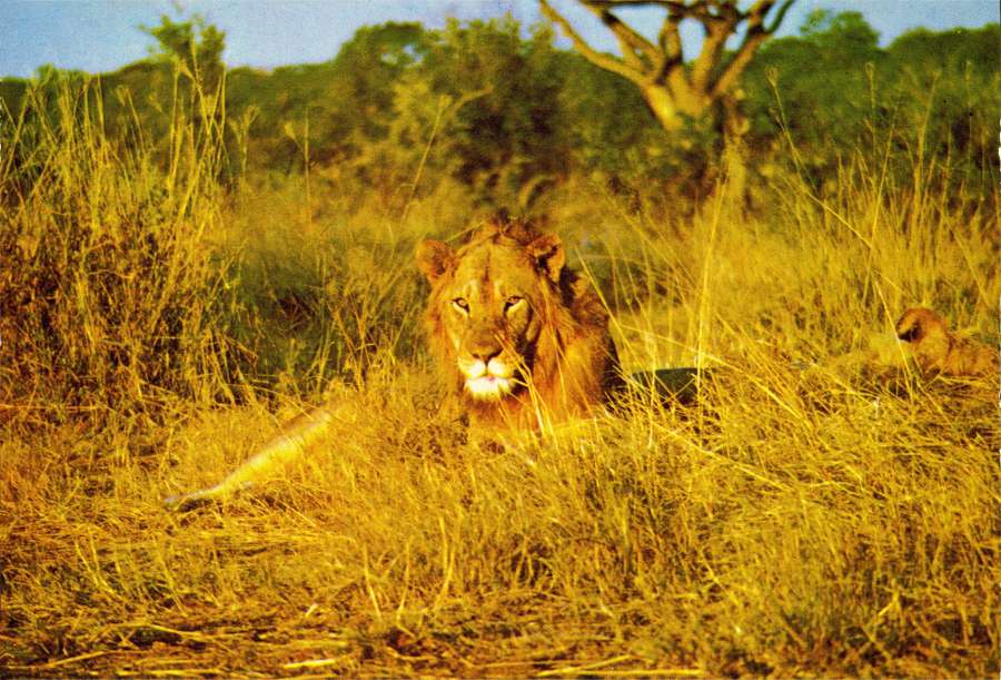 3. N.º L3/23 - LEÃO (LEO leo krugeri) - Publicado pela Sociedade de Safaris de Moçambique (SARL) com autorisação de Big Game Photography - S/D - Dimensões: 15x10,2 cm. - Col. Manuel Bóia (1970)