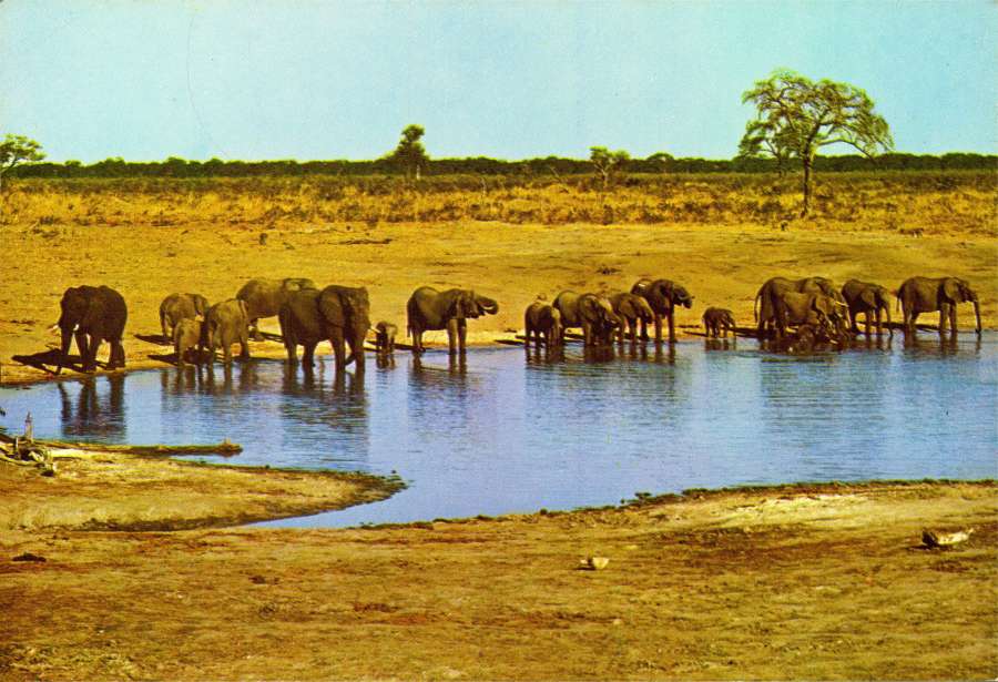 4. N.º E2/34 - ELEFANTES BEBENDO (LOXODONTA africana africana) - Publicado pela Sociedade de Safaris de Moçambique (SARL) com autorisação de Big Game Photography - S/D - Dimensões: 15x10,2 cm. - Col. Manuel Bóia (1970)