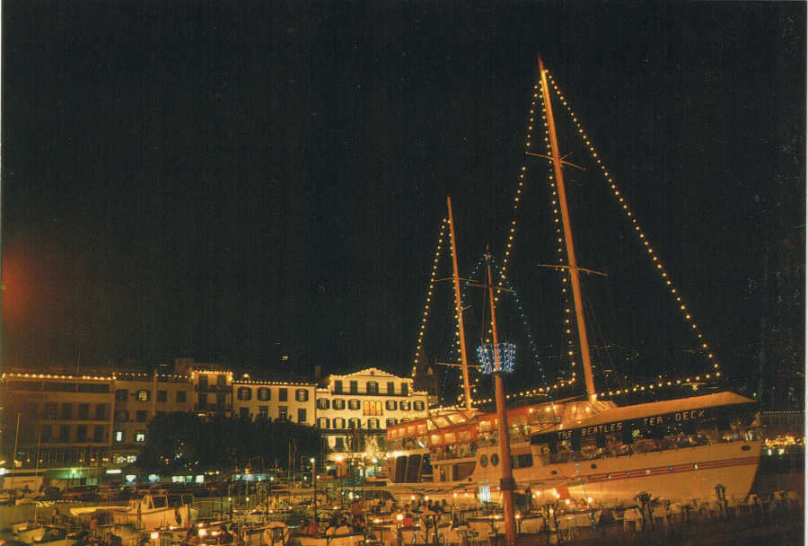 N.º MD 154 - FUNCHAL (Madeira) Iate dos Beatles e Esplanada - Ed. Francisco Ribeiro - Rua Nova de S. Pedro, 27 - Telef.23930 Fotografia por MANUEL NICOLAU-Machico Madeira - SD - Dim. 14,8x10,4 cm. - Col. Manuel e Fátima Bóia (1975).