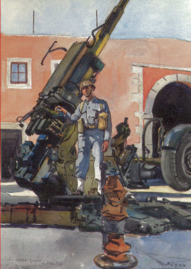 75. Soldado de Artilharia Pesada nº 1 junto a um obus (1947)
