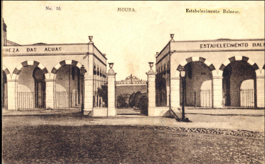 5 - Estabelecimento Balnear. Foi inaugurado em 1906 e concessionado a “Assis & Cª- Empresa de Águas de Moura, Lda” que o explorou até 1937, data em que passou para a posse da Câmara Municipal de Moura, continuando aberto até hoje