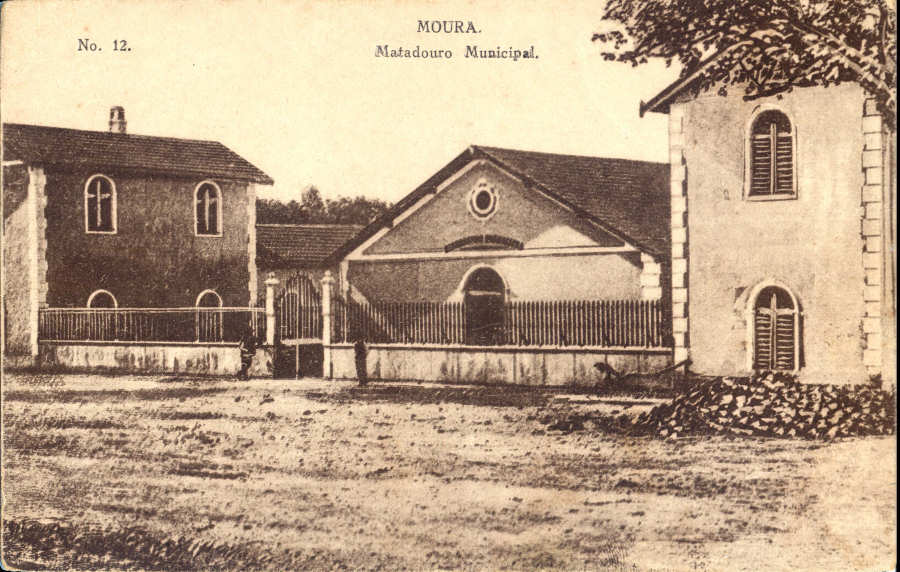 Nº 12 - MOURA. Matadouro Municipal - Edição André dos Santos Conceição, Moura (1920) - Dim. 13,6x8,6 cm - Col. A. Monge da Silva