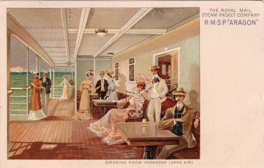 R.M.S.P. "Aragon". Smoking Room Verandah. Editado pela Royal Mail