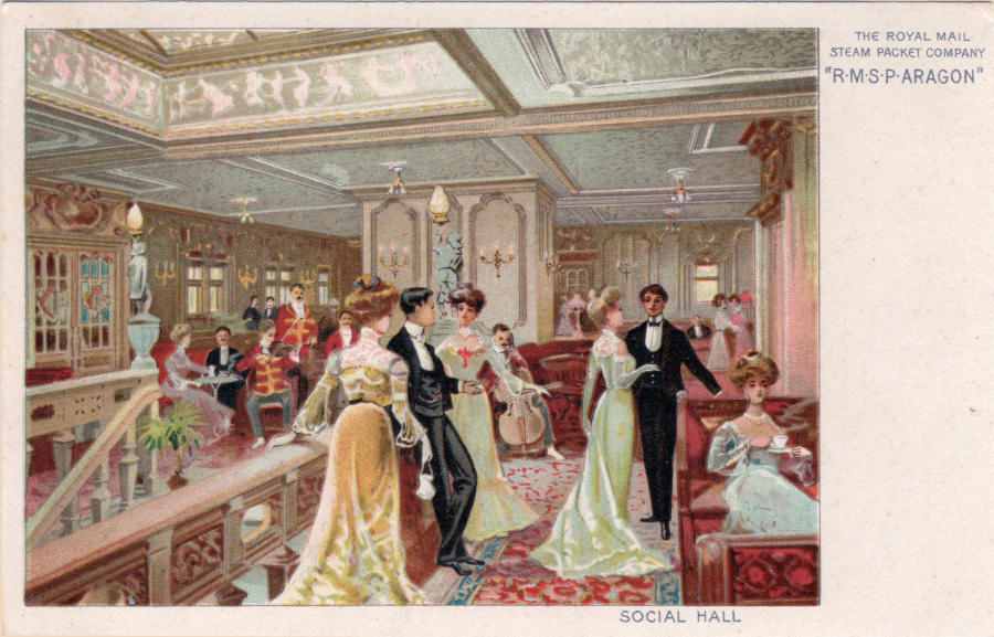 R.M.S.P ."Aragon". Social Hall. Editado pela Royal Mail Steam Paket