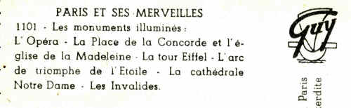 Nº 1101 - Paris. Monumentos iluminados - Edit André Laconte, Paris - Adquirido em 1968 - Dim. 13,7x8,7 cm - Col. Amílcar Monge da Silva