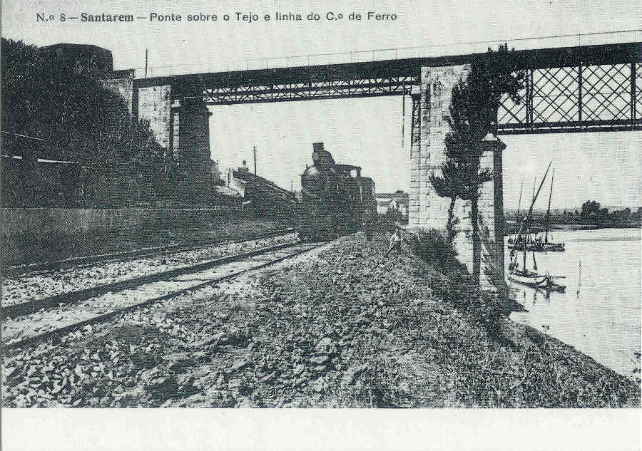 27. Santarém. Ponte sobre o Tejo e linha do Caminho de Ferro.