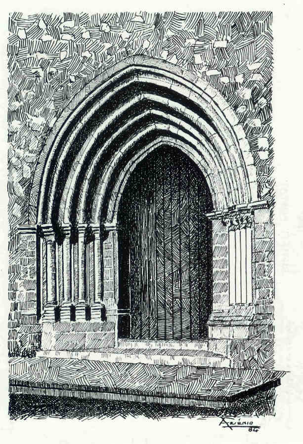 Nº 2 - Igreja de S. João do Alporão - Desenho de Arsénio da Ressurreição - Edição Associação de Estudos e Defesa do Património Histórico-Cultural de Santarém - 1990 - Dim. 10,5x15,1cm - Col. Miguel Soares Lopes