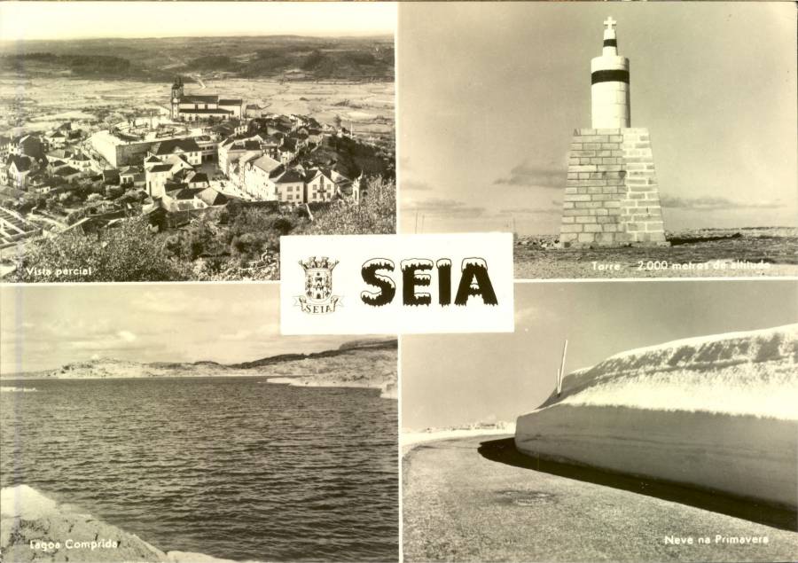 S/N - SEIA Vista parcial; Torre 2000 metros; Lagoa Comprida; Neve na Primavera - Edição da CASA HAVANEZA, Residência Serra da Estrela, Seia - S/D - Dimensões: 14,7x10,4 cm. - Col. HJCO