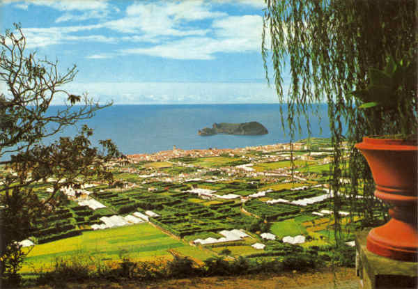 532. Nº 621. S. Miguel. Açores. Vila Franca do Campo. Vista geral vendo-se as estufas de ananazes - Ed. Cómer, Trav. do Alecrim, 1 Lix. -SD-Dim. 104x149mm-Col. E. Semedo