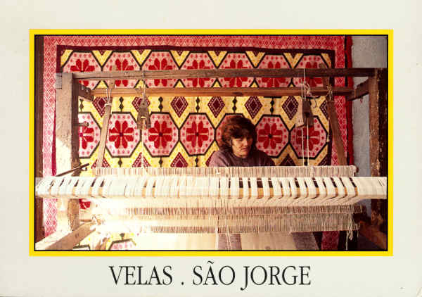 537. Nº 5. Tecedeira. Lugar da Relva. Curato da Beira. Srª Maria de Jesus Ávila tecendo colcha no tear. Câmara Municipal das Velas, 1991 Design gráfico Mário Duarte; Chavão José Sousa Soares - Dim. 119x170 mm - Col. E. Semedo