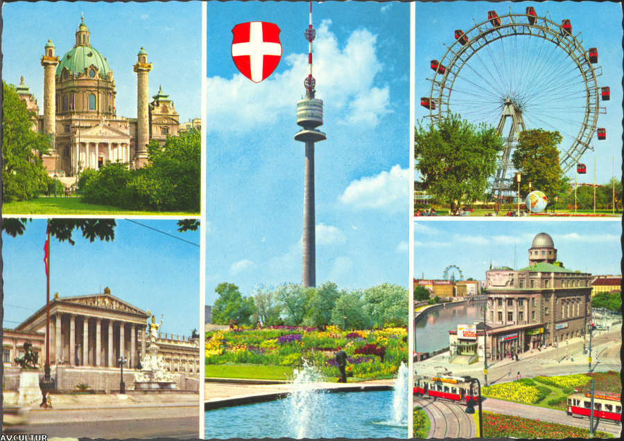 55. Souvenir de Viena. Karlskirche, Parlament, Donauturm, Riesenrad,
