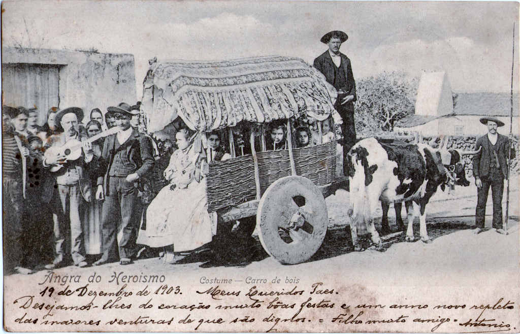 276. Angra do Heroísmo (Açores). Costume e carro de bois tradicional. Circulado em 19 Dez. 1903 (c. 1900).