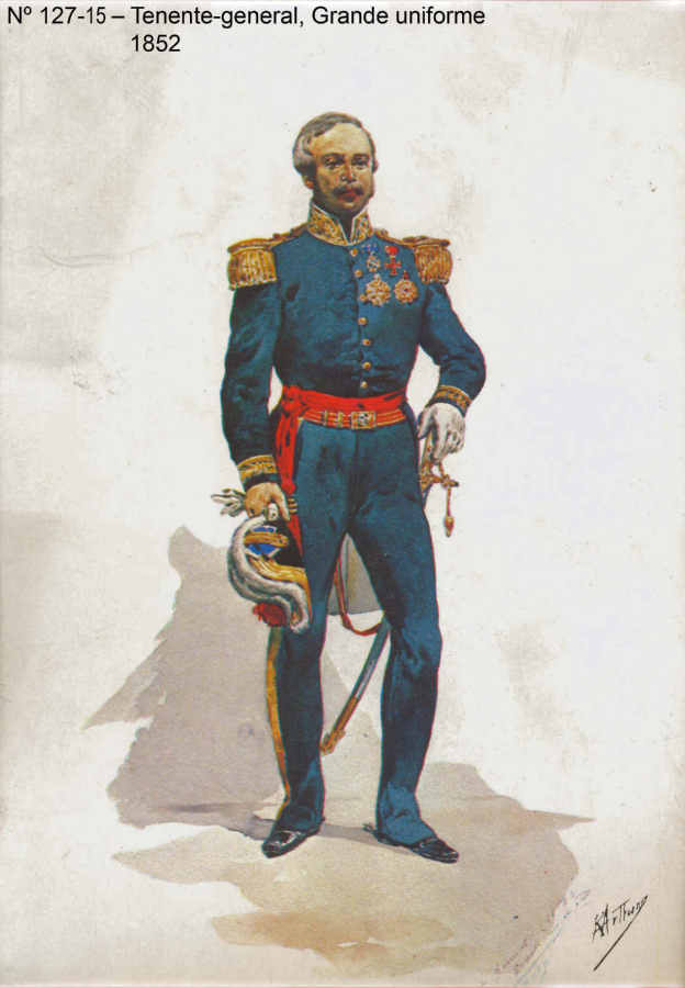 Nº 127-15 - Tenente-general, Grande uniforme, 1852 - Aguarela do Cor. Ribeiro Artur - Edição Jornal do Exército, 1985 - Dim. 15x10,3 cm - Col. A. Monge da Silva