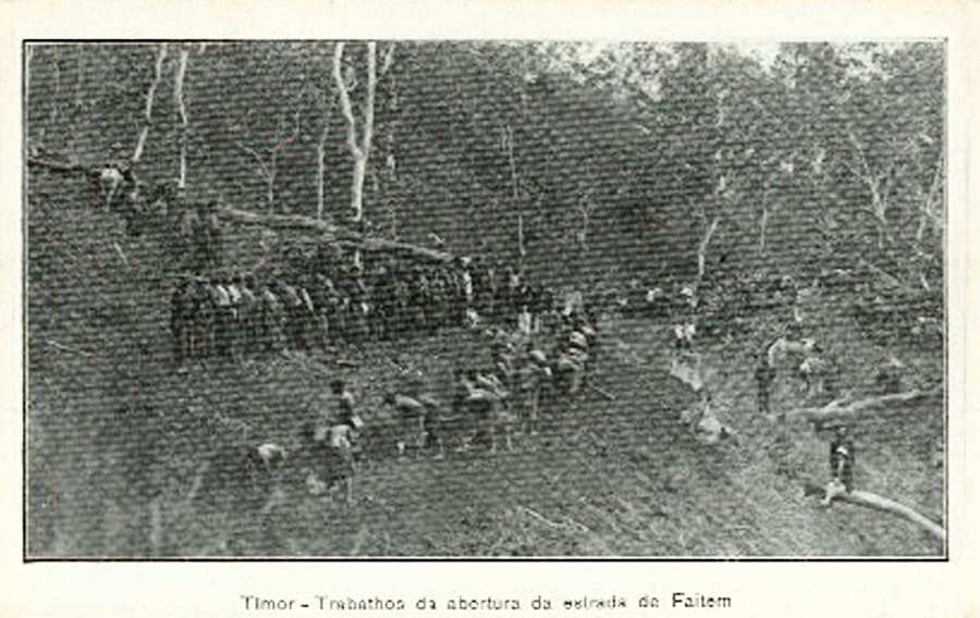 62. SN - Timor - Trabalhos da acertura da estrada de Faitem - Edição da Circunscrição Civil de Liquiça - SD - Dim. ??x?? cm - Col. Monge da Silva (Cerca de 1925).