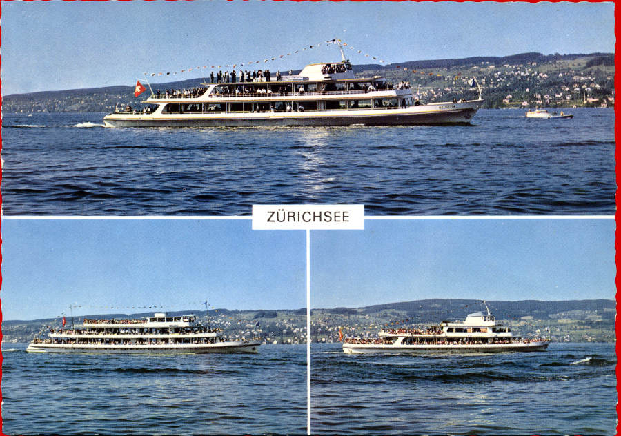 10. Nº 16327 - Zürichsee, Motorschiffe Helvetia, Linth und Limmat - 14,8x10,6 - Editor “Rud. Suter”,Zurich - Adquirido em 1968 - Col A. Monge da Silva.