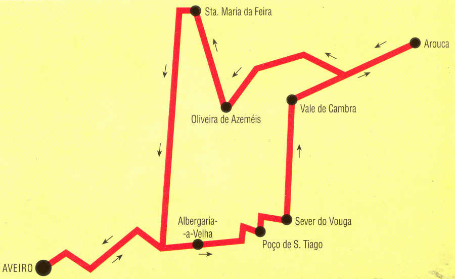 direcção a Albergaria-a-Velha, e, daí, pela estrada para Sever do