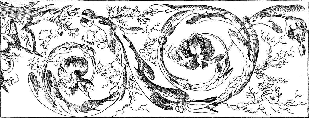 guarnecido de verduras de pinheiro, vendo-se a lua cerca (alusão aos