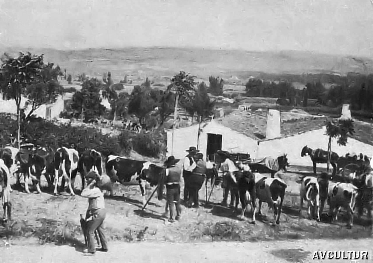 pé, de aguilhão em punho segue o marido e pai dessa família,