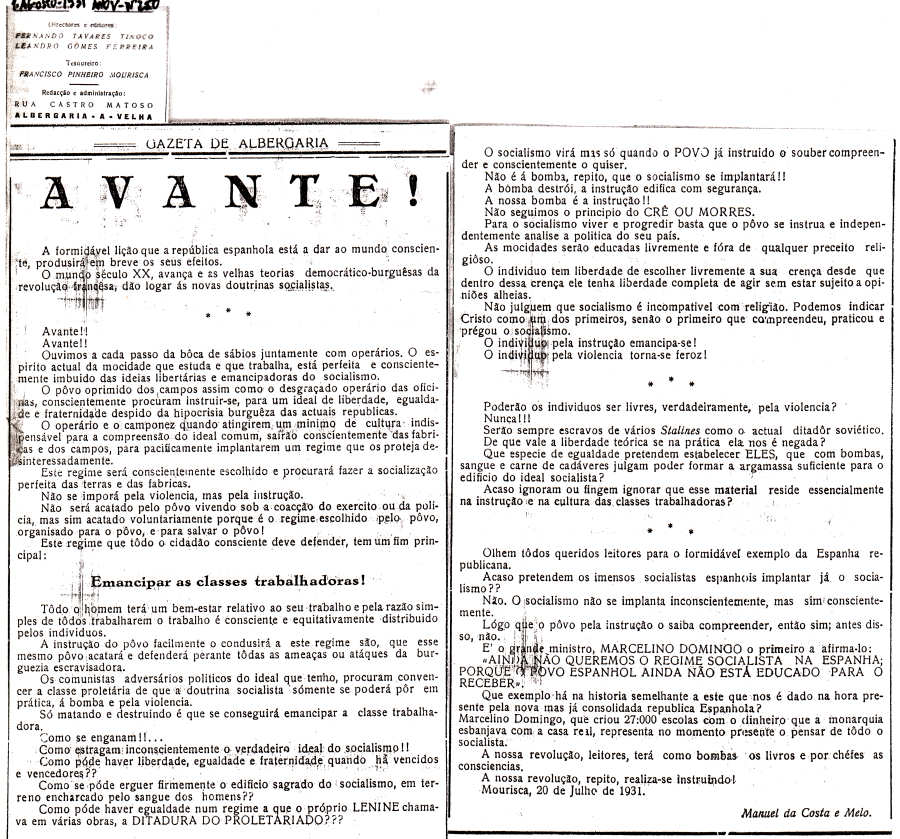 Síntese - Costa e Melo, ainda sem completar dezoito anos, publicou este artigo cujo conteúdo reforça o publicado a 18.07.1931,