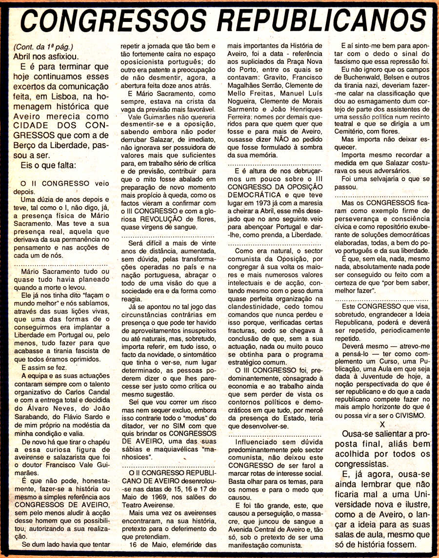 comunicação no Congresso sobre a vida da República Portuguesa,