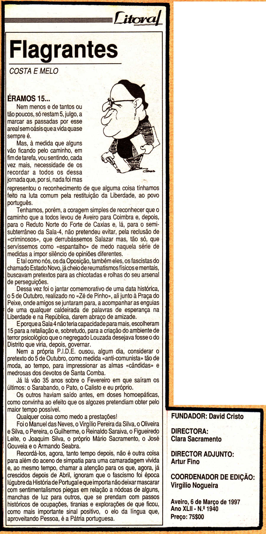 Mais uma vez, Costa e Melo recorda o encarceramento de que foi