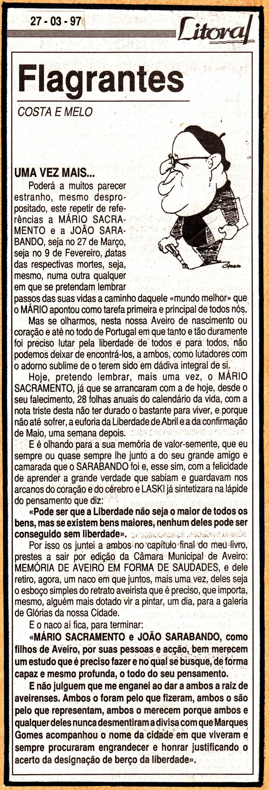(27.03.1969), Costa e Melo recorda, não só este amigo, mas também