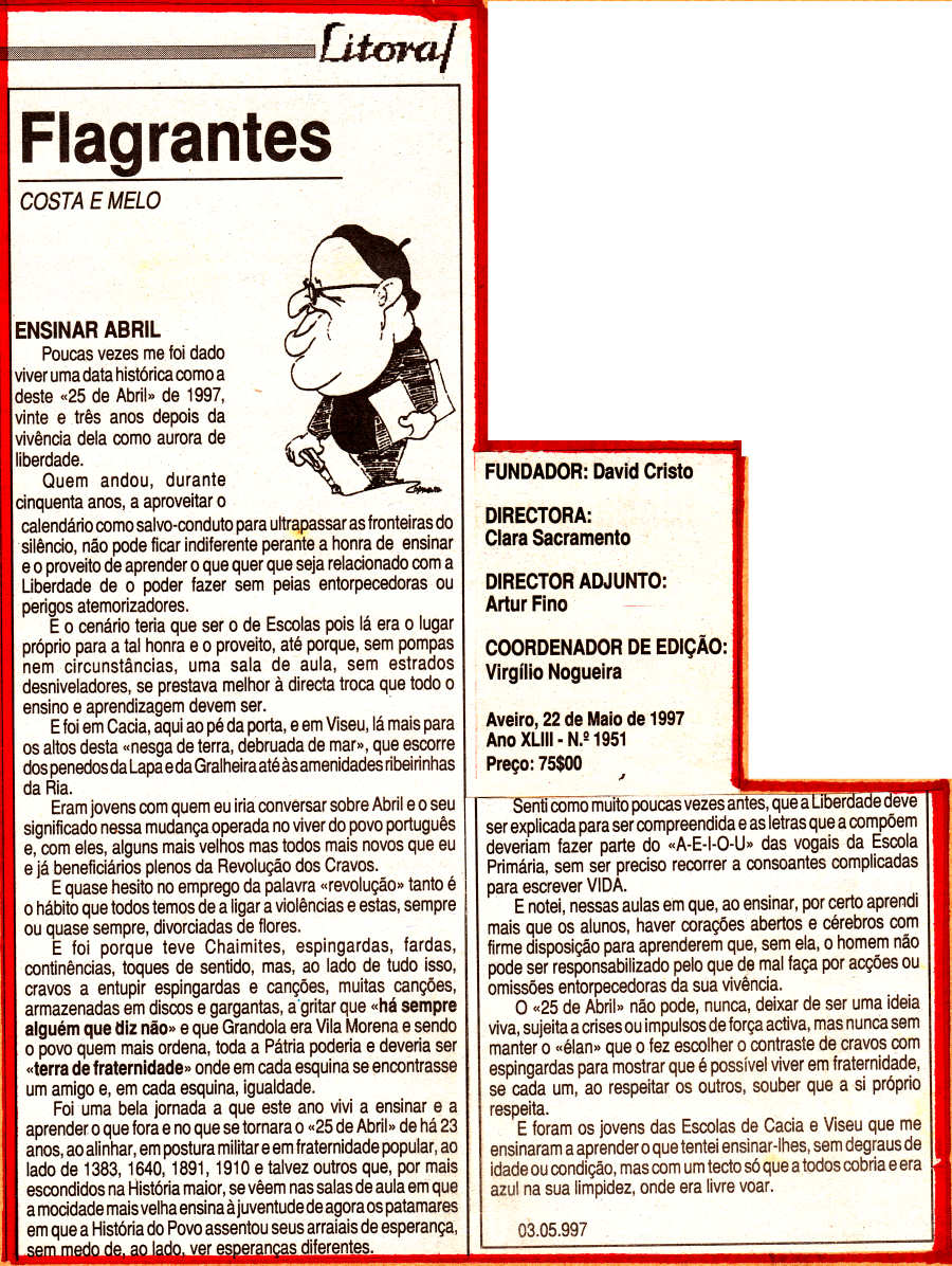 Na passagem do vigésimo terceiro aniversário da revolução de abril