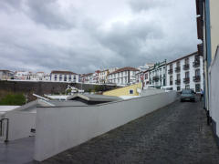 Porto de Angra, observado do largo em frente à Igreja da Misericórdia. Clicar para ampliar.