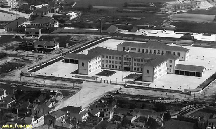 aérea de 1952 mostrando o novo Liceu de Aveiro e o início da urbanização
