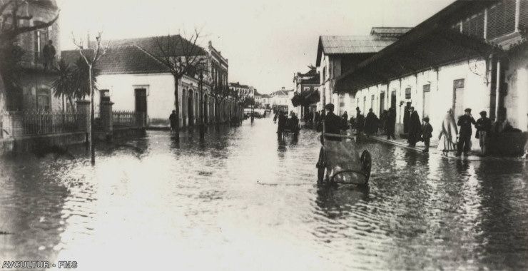 cheia, vendo-se parte das casas existentes entre o mercado Manuel
