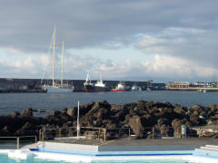 865  Paragem em S. Roque para recolha de elementos do grupo para o jantar na Madalena   867 Estátua de D. Dinis em S. Roque do Pico.