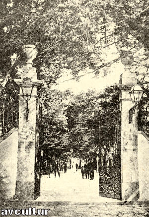 Dois candeeiros de gás no antigo portão do Jardim Público, demolido em 1945. – ///////