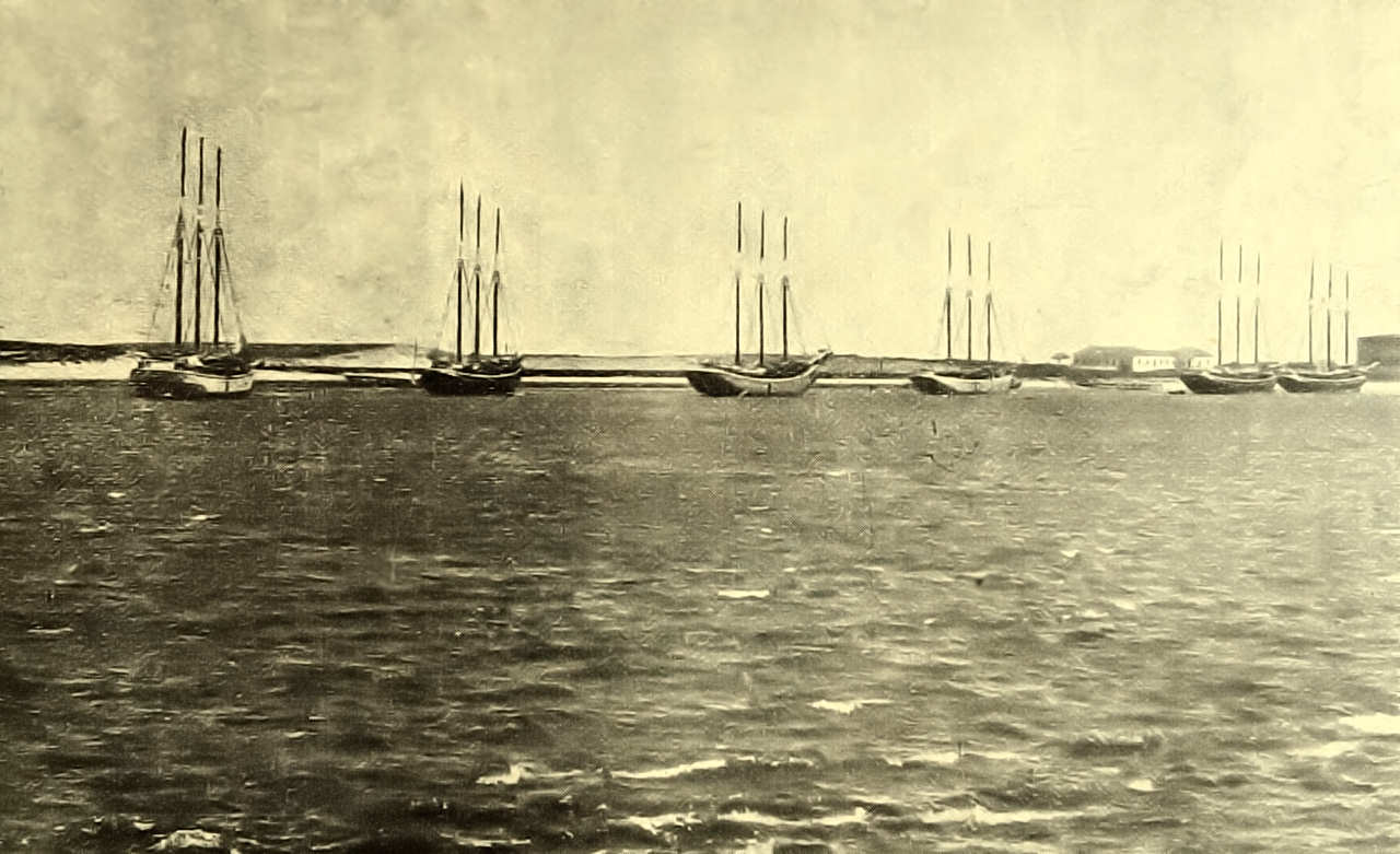 Lugres na entrada da barra de Aveiro. Estuário de S. Jacinto,