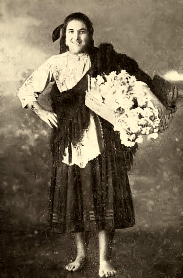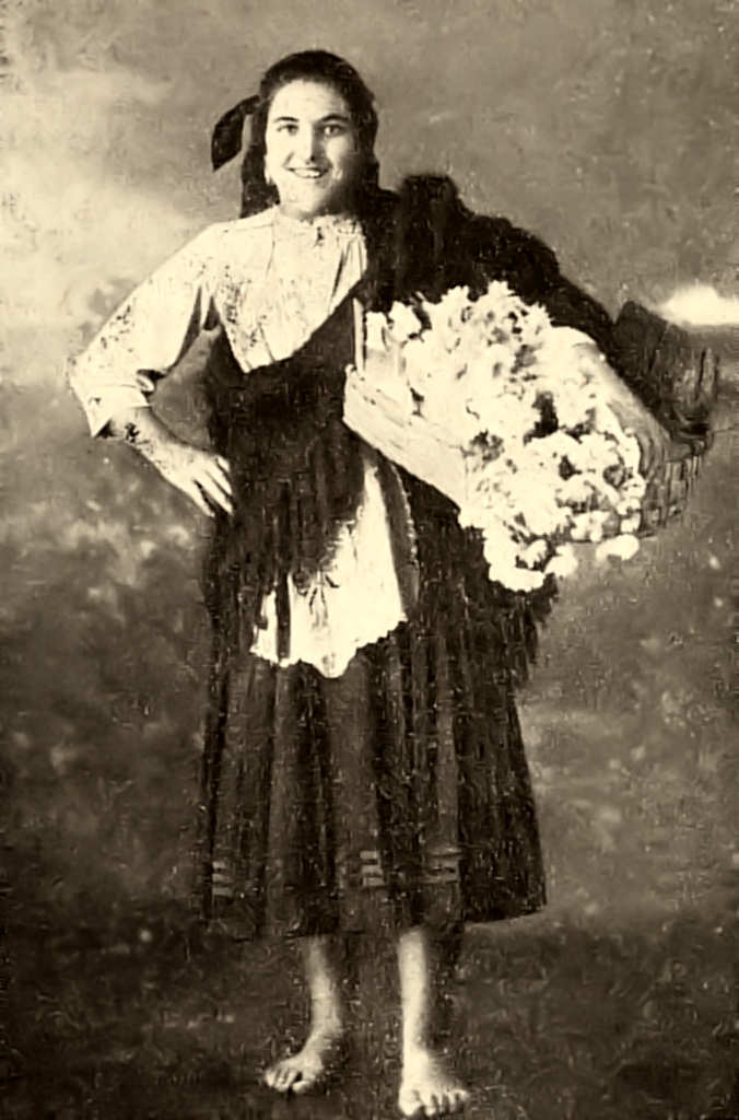 CAMPONESA DOS ARREDORES DE COIMBRA – vendendo flores no mercado da cidade. Actualidade. (1940?) – ///////