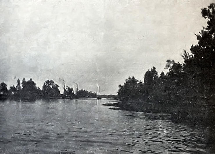 As águas corriam e cantavam por toda a parte em levadas rápidas; nas baixas do Antuã, entumescido e barrento,