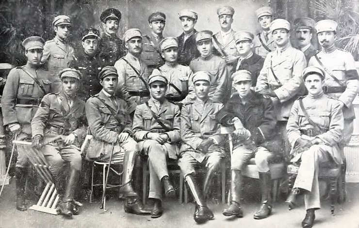 esquerda para direita: 1º plano (sentados): alferes Gomes