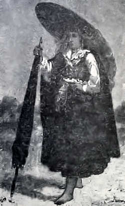 de feltro de larga aba revirada, aventais de serguilha, manaias