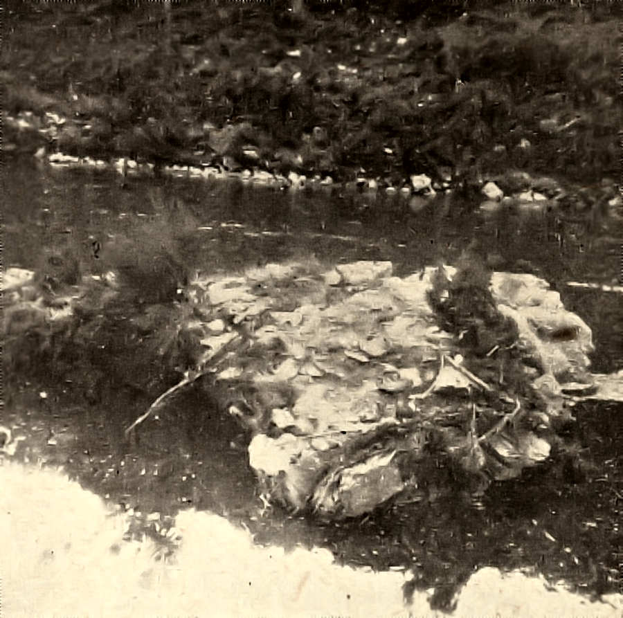 pudéssemos examiná-lo. E ali chegado, presenciámos o referido bocado de paredão e ainda um bloco de alvenaria no leito
