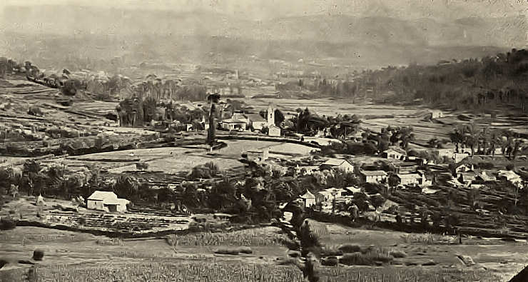 À direita, no 1.º plano, a povoação