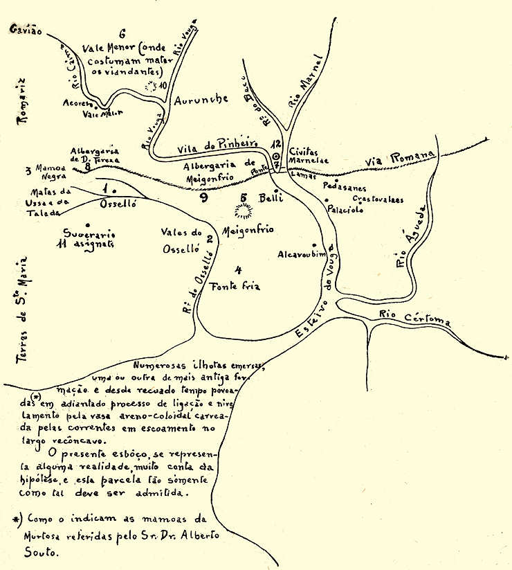 relativamente larga, e em o qual viriam desaguar também o Águeda e Cértoma, possibilidade lembrada, pelo Sr. Dr.