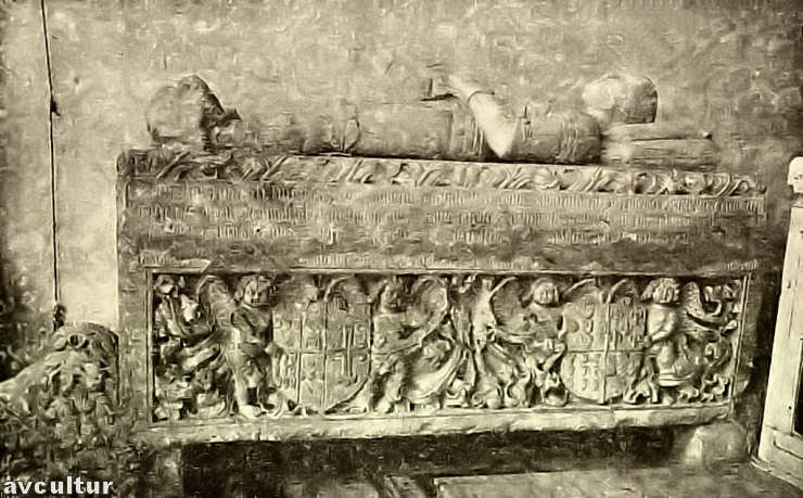 Túmulo de João de Albuquerque antes de ser retirado para o Museu de Aveiro, onde actualmente se encontra.