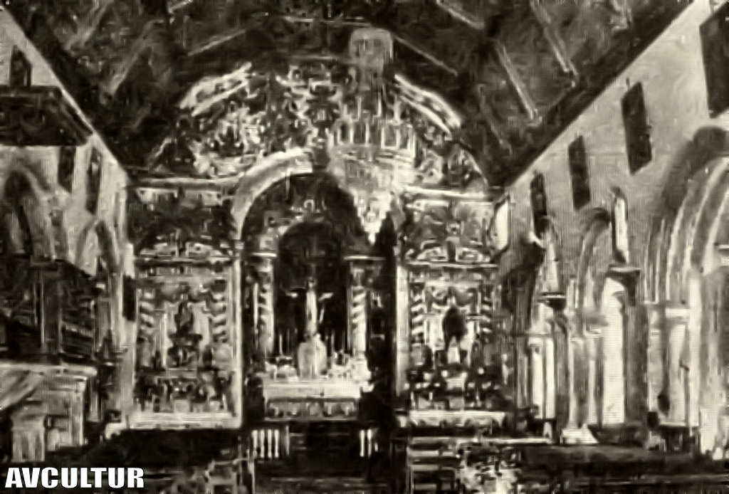Pode admirar-se o arco cruzeiro e a tribuna, com