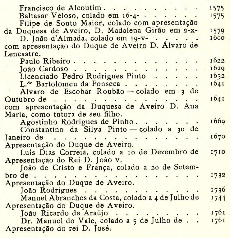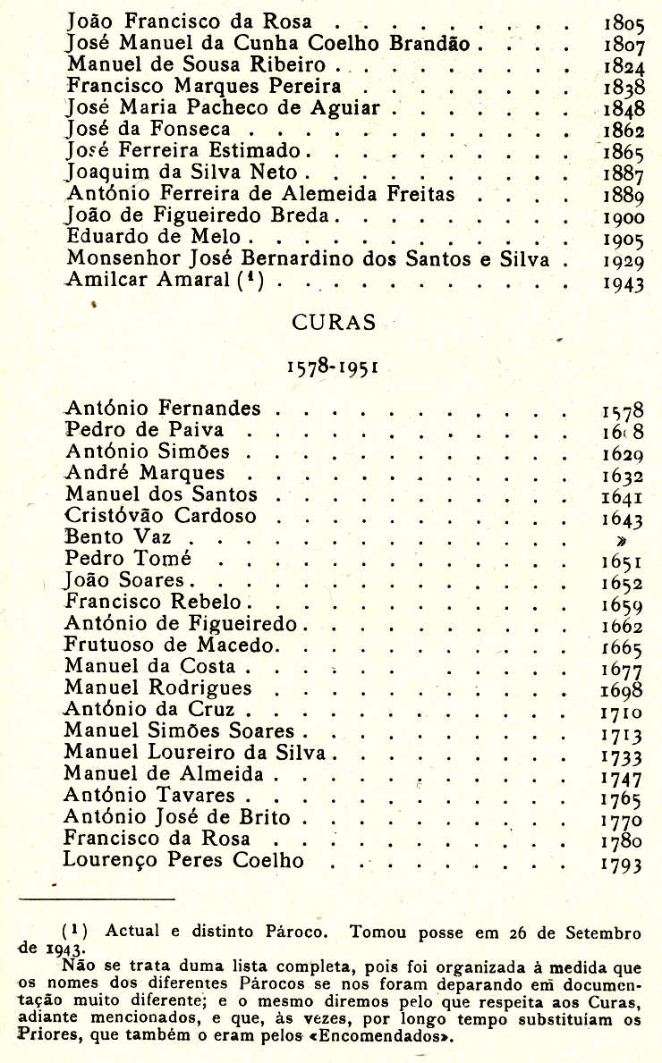 encerra, seu aspecto actual, à enumeração dos Párocos e Curas que nela