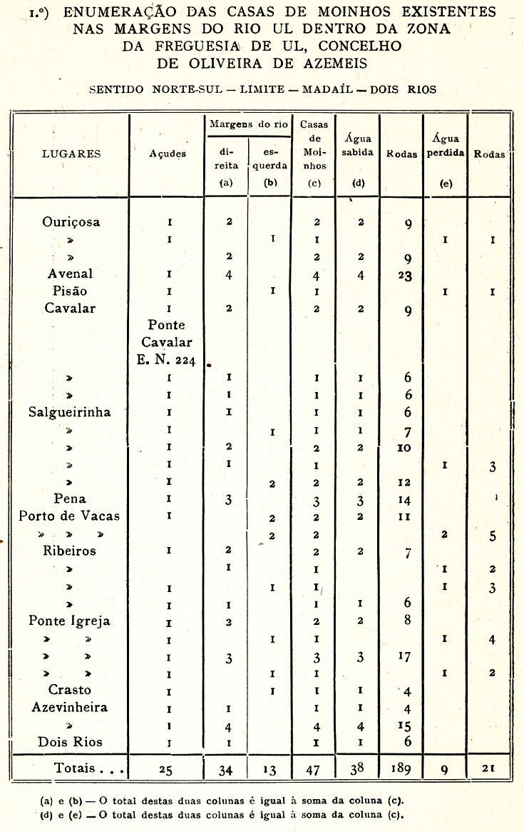 lugares da freguesia por onde correm os dois rios (Antuã e UI), e açudes, casas de moinhos nas margens dos mesmos e