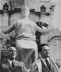 38 - Arlindo Vicente e Mário Soares no Cemitério do Alto de S. João, junto ao túmulo do Almirante Reis, onde tantas jornadas de luta se travaram.