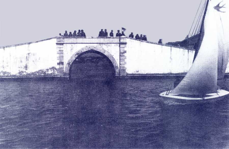 a Ponte da Dobadoira e o mastro do Milenário em fundo. Aqui a