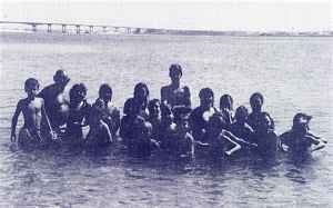 integrando-se nas actividades da Y. M. C. A. e ensinando a nadar
