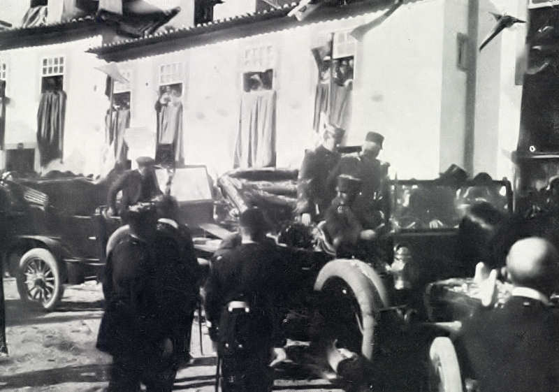 perpendicular à entrada dos Paços do Concelho em direcção à casa que